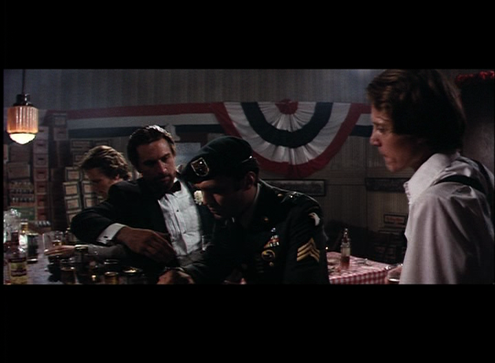 Coming Home also shows the process and difficulty of healing both the physical and mental scars. Just as Luke is regaining a place in the world, Bob returns even more coiled and frayed than when he left. His view of war, his country and himself has changed, but he doesn't know what to do with all that information. His wife's infidelity adds kindling to the fire and allows Dern one truly excellent "freak out" scene when he yells at his wife with a blazing rage. He's not the only one suffering though - the brother of his buddy's girlfriend Violet (now good friends with Sally) is struggling in a mental hospital to regain his footing. Robert Carradine plays him with a great deal of sensitivity and you can almost feel the pain and stress as he tries to do a simple thing like play his guitar. Nothing remains simple for those exposed to the ugliness of humanity and it can infect others around them as well. Both films have moments of hope and show strength of character and community. But in the end, no one truly walks away unscathed.