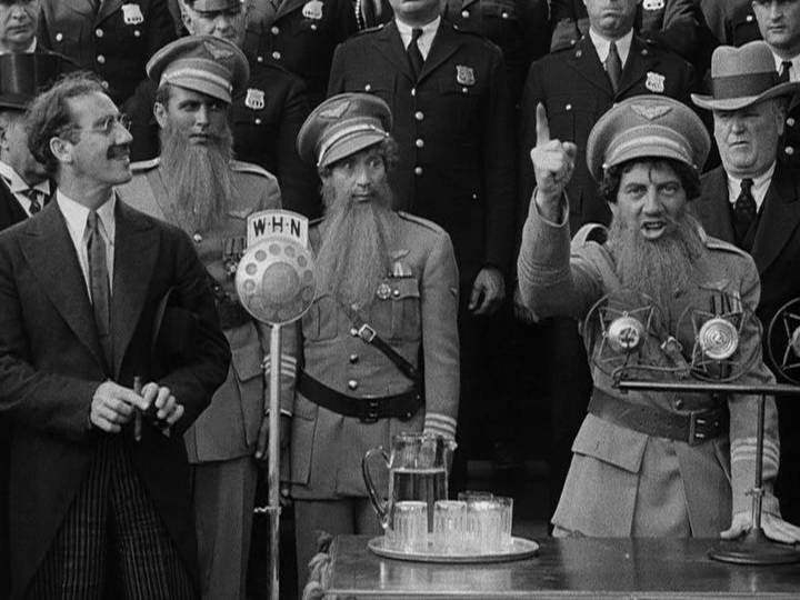 The Marx Brothers, though still pretty good with a pratfall themselves, funnel most of their creative juices into the more verbal, musical and clownish elements of vaudeville. Groucho was given most of the good lines and putdowns (of anyone within his line of sight), but he also typically had several wonderful bits of verbal jousting with Chico as they each layered spoonerisms on top of assumptions and formed perfect moments of miscommunication. Each film also regularly had outlets for their music - Groucho's catchy songs, Chico's playful, wiggling-finger piano playing and Harpo's mostly delicate harp solos. Regardless of the plot, the lovers they were trying to help put together and the selfish schemes they were trying to torpedo, they never forgot to show the joy of just clowning around for the simple sake of amusing oneself (and hopefully others around them). To call them boisterous would be like calling a dozen, coca-cola-caffeinated 9 year-old boys playing video games a quiet play date.